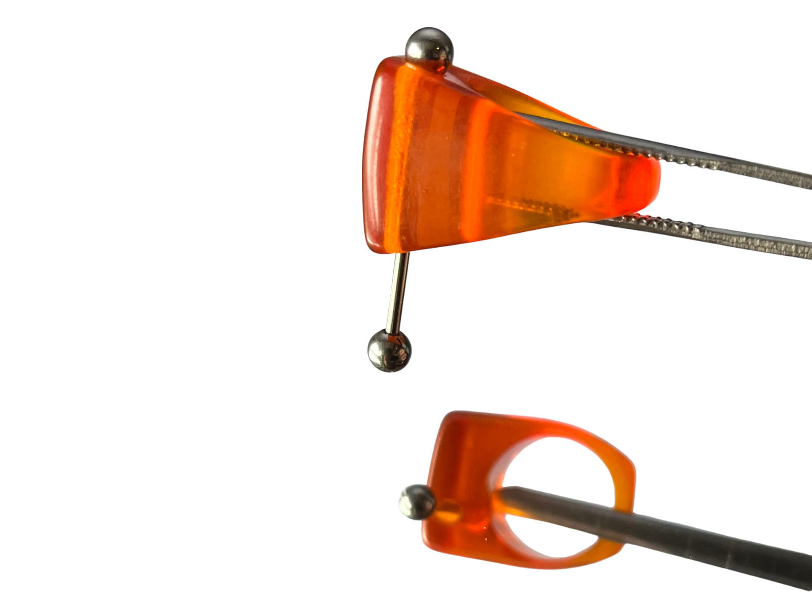 Bague en résine upcyclé d’un stock dormant, percé à la main dans notre atelier au pays Basque, puis orné d’un piercing en acier. La longueur du piercing ajoute un mouvement et un léger bruit qui sont assez satisfaisant ( on pense à vous mes TDHA <33 )