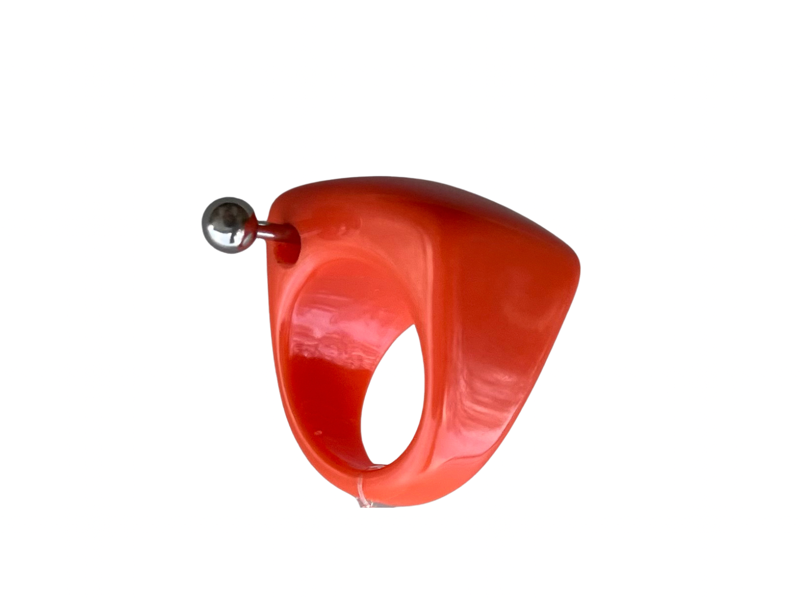 Bague en résine upcyclé d’un stock dormant, percé à la main dans notre atelier au pays Basque, puis orné d’un piercing en acier. La longueur du piercing ajoute un mouvement et un léger bruit qui sont assez satisfaisant ( on pense à vous mes TDHA <33 )