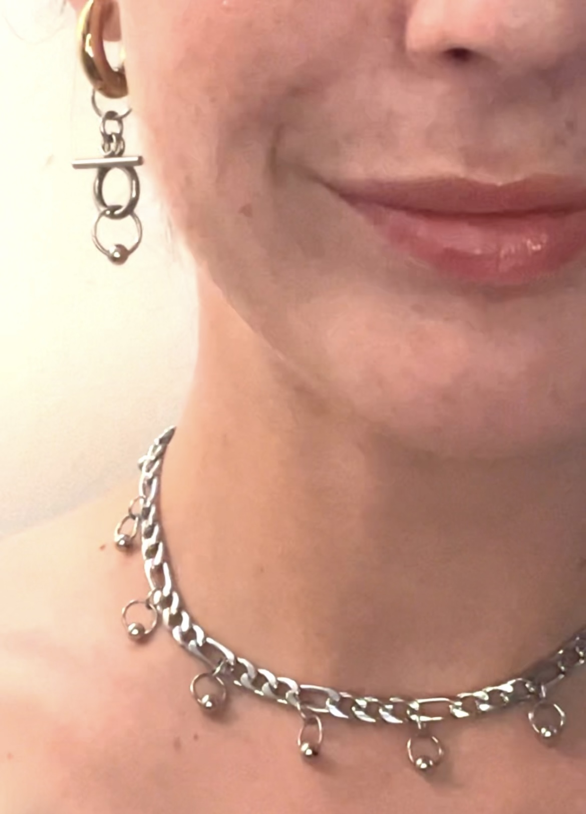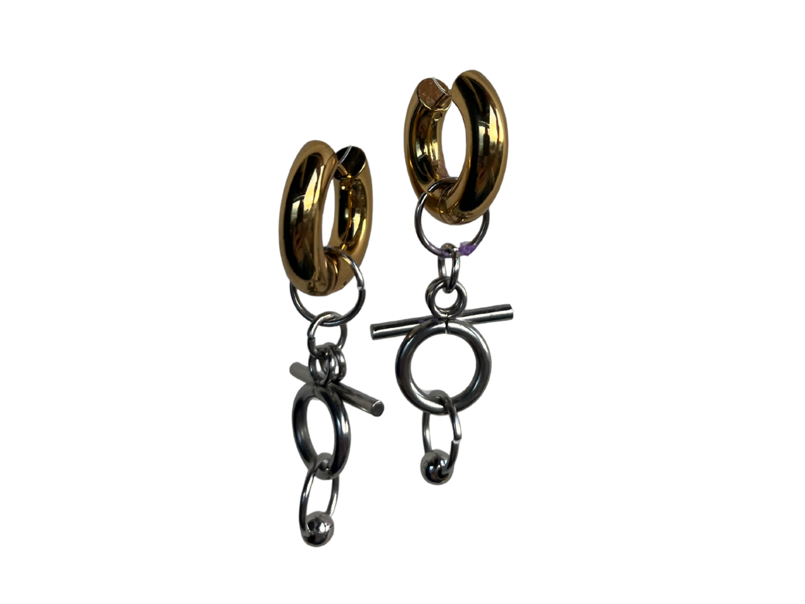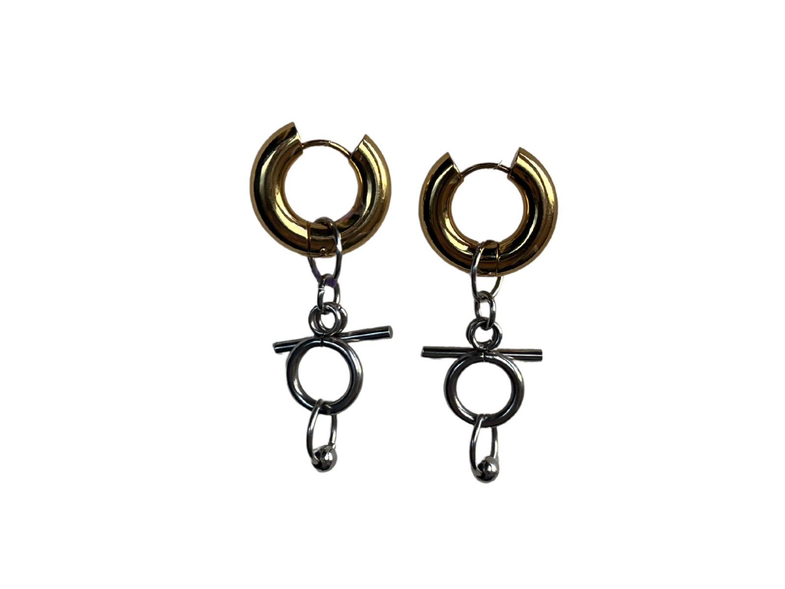 Boucles d’oreilles en acier inoxydable bi-color, orné d’un piercing style septum et de fermoir style mord à cheval. Pièce en acier hypoallergénique résiste à l’eau et créé dans notre atelier au Pays Basque with love <33