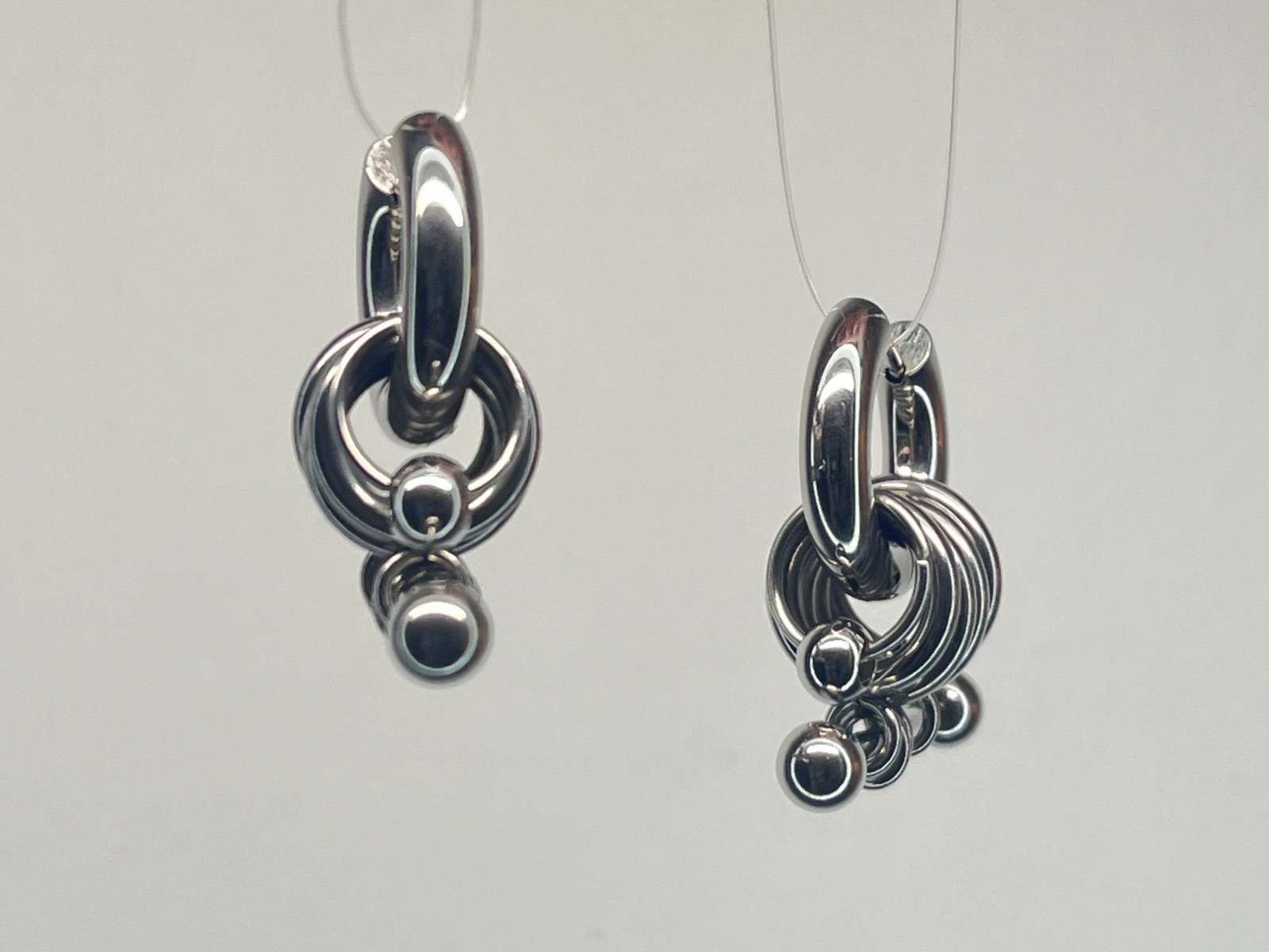 Boucles d’oreilles en acier inoxydable, monture argenté épaisse, pendentif en acier inoxydable argenté avec double piercing.